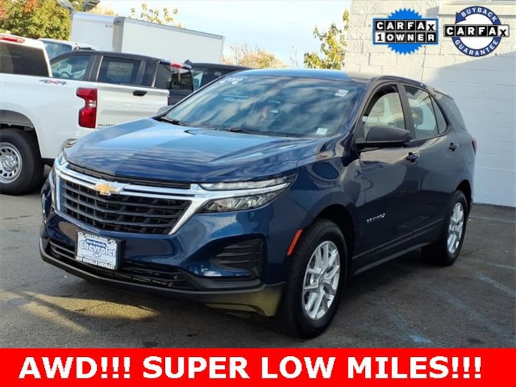 ***LOW MILES***, *** ALL WHEEL DRIVE***, *** ONE OWNER***, ***ACCIDENT FREE***, ***CARBRAVO***, AWD. Odometer is 9345 miles below market average! CARFAX One-Owner. Clean CARFAX. Certified.Blue Glow Metallic 2023 Chevrolet Equinox LS AWD 6-Speed Automatic Electronic with Overdrive 1.5L DOHCAt New Rochelle Chevrolet our pricing strategy guaranties you the most aggressive pricing up front with no games or gimmicks. Our advertised price is our best price and we are confident you will be completely satisfied with the complete buying experience at NEW ROCHELLE CHEVROLET!!! Scheduled an appointment to test drive any of our Pre-owned cars today..... We appreciate the opportunity to earn your business.Chevrolet Certified Pre-Owned Details:* Warranty Deductible: $0* Roadside Assistance* 24 months/24,000 miles (whichever comes first) Certified Pre-Owned Scheduled Maintenance Plan and 3 days/150 miles (whichever comes first) Vehicle Exchange Program. SiriusXM 3-month trial subscription.* Transferable Warranty* Vehicle History* 172 Point Inspection* Limited Warranty: 12 Month/12,000 Mile (whichever comes first) from certified purchase date* Powertrain Limited Warranty: 72 Month/100,000 Mile (whichever comes first) from original in-service dateABSOLUTELY committed to YOU!!!