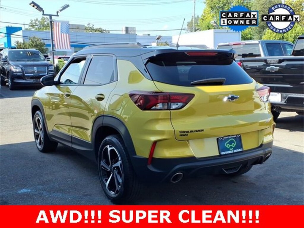 *** ALL WHEEL DRIVE***, *** ONE OWNER***, ***ACCIDENT FREE***, ***NAVIGATION***, ***CARBRAVO***. CARFAX One-Owner. Clean CARFAX. Certified.Nitro Yellow Metallic 2023 Chevrolet TrailBlazer RS AWD 9-Speed Automatic 1.3L Ecotec Turbo DOHC SIDI w/VVTAt New Rochelle Chevrolet our pricing strategy guaranties you the most aggressive pricing up front with no games or gimmicks. Our advertised price is our best price and we are confident you will be completely satisfied with the complete buying experience at NEW ROCHELLE CHEVROLET!!! Scheduled an appointment to test drive any of our Pre-owned cars today..... We appreciate the opportunity to earn your business.Chevrolet Certified Pre-Owned Details:* Powertrain Limited Warranty: 72 Month/100,000 Mile (whichever comes first) from original in-service date* Warranty Deductible: $0* Transferable Warranty* 172 Point Inspection* Vehicle History* Roadside Assistance* Limited Warranty: 12 Month/12,000 Mile (whichever comes first) from certified purchase date* 24 months/24,000 miles (whichever comes first) Certified Pre-Owned Scheduled Maintenance Plan and 3 days/150 miles (whichever comes first) Vehicle Exchange Program. SiriusXM 3-month trial subscription.ABSOLUTELY committed to YOU!!!