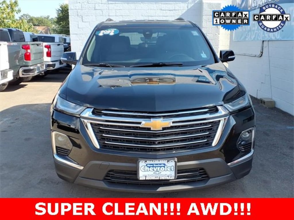 ***LEATHER***, ***LOW MILES***, ***SUNROOF***, *** ALL WHEEL DRIVE***, *** BACKUP SENSORS***, *** LEATHER ***, *** ONE OWNER***, ***ACCIDENT FREE***, ***NAVIGATION***, ***CARBRAVO***, AWD. Odometer is 9265 miles below market average! CARFAX One-Owner. Clean CARFAX. Certified.Mosaic Black Metallic 2023 Chevrolet Traverse LT Leather AWD 9-Speed Automatic 3.6L V6 SIDI VVTAt New Rochelle Chevrolet our pricing strategy guaranties you the most aggressive pricing up front with no games or gimmicks. Our advertised price is our best price and we are confident you will be completely satisfied with the complete buying experience at NEW ROCHELLE CHEVROLET!!! Scheduled an appointment to test drive any of our Pre-owned cars today..... We appreciate the opportunity to earn your business.Chevrolet Certified Pre-Owned Details:* Limited Warranty: 12 Month/12,000 Mile (whichever comes first) from certified purchase date* Warranty Deductible: $0* Powertrain Limited Warranty: 72 Month/100,000 Mile (whichever comes first) from original in-service date* Roadside Assistance* Transferable Warranty* Vehicle History* 24 months/24,000 miles (whichever comes first) Certified Pre-Owned Scheduled Maintenance Plan and 3 days/150 miles (whichever comes first) Vehicle Exchange Program. SiriusXM 3-month trial subscription.* 172 Point InspectionABSOLUTELY committed to YOU!!!