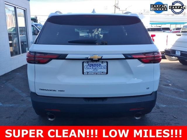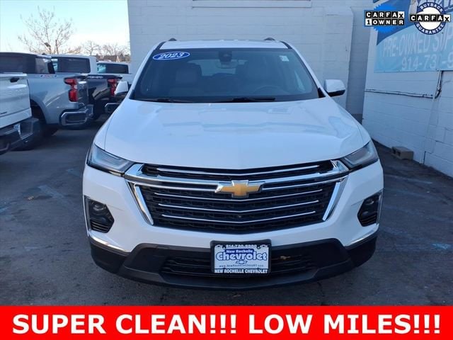 ***LEATHER***, ***LOW MILES***, ***SUNROOF***, *** ALL WHEEL DRIVE***, *** BACKUP SENSORS***, *** LEATHER ***, *** ONE OWNER***, ***ACCIDENT FREE***, ***NAVIGATION***, AWD. Odometer is 6455 miles below market average! CARFAX One-Owner. Clean CARFAX. Certified.Summit White 2023 Chevrolet Traverse LT Leather AWD 9-Speed Automatic 3.6L V6 SIDI VVTAt New Rochelle Chevrolet our pricing strategy guaranties you the most aggressive pricing up front with no games or gimmicks. Our advertised price is our best price and we are confident you will be completely satisfied with the complete buying experience at NEW ROCHELLE CHEVROLET!!! Scheduled an appointment to test drive any of our Pre-owned cars today..... We appreciate the opportunity to earn your business.Chevrolet Certified Pre-Owned Details:* Limited Warranty: 12 Month/12,000 Mile (whichever comes first) from certified purchase date* Transferable Warranty* Roadside Assistance* 24 months/24,000 miles (whichever comes first) Certified Pre-Owned Scheduled Maintenance Plan and 3 days/150 miles (whichever comes first) Vehicle Exchange Program. SiriusXM 3-month trial subscription.* 172 Point Inspection* Warranty Deductible: $0* Powertrain Limited Warranty: 72 Month/100,000 Mile (whichever comes first) from original in-service date* Vehicle HistoryABSOLUTELY committed to YOU!!!