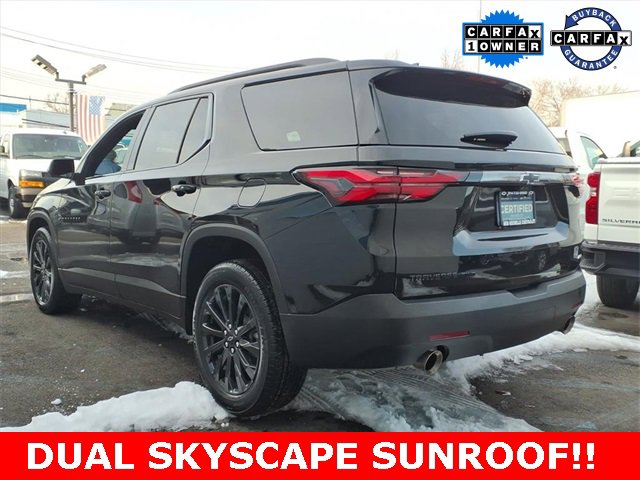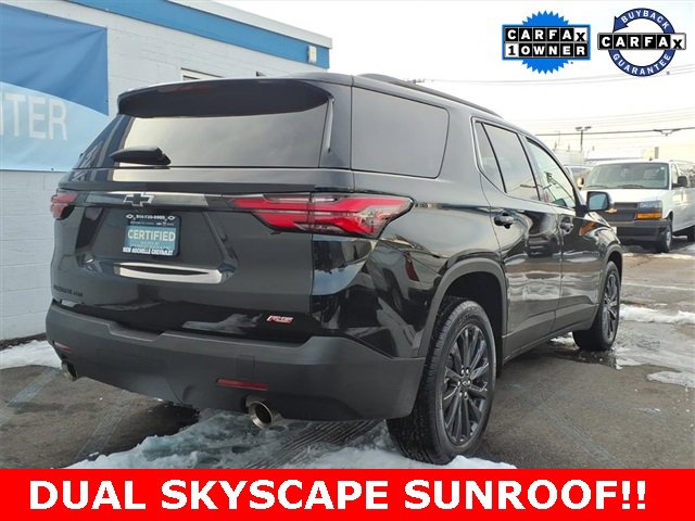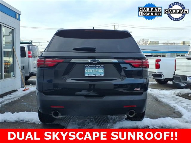 ***LEATHER***, ***SUNROOF***, *** BACKUP SENSORS***, *** LEATHER ***, *** ONE OWNER***, ***ACCIDENT FREE***, ***NAVIGATION***, AWD. Priced below KBB Fair Purchase Price! CARFAX One-Owner. Certified.Mosaic Black Metallic 2023 Chevrolet Traverse RS AWD 9-Speed Automatic 3.6L V6 SIDI VVTAt New Rochelle Chevrolet our pricing strategy guaranties you the most aggressive pricing up front with no games or gimmicks. Our advertised price is our best price and we are confident you will be completely satisfied with the complete buying experience at NEW ROCHELLE CHEVROLET!!! Scheduled an appointment to test drive any of our Pre-owned cars today..... We appreciate the opportunity to earn your business.Chevrolet Certified Pre-Owned Details:* Transferable Warranty* Warranty Deductible: $0* 24 months/24,000 miles (whichever comes first) Certified Pre-Owned Scheduled Maintenance Plan and 3 days/150 miles (whichever comes first) Vehicle Exchange Program. SiriusXM 3-month trial subscription.* Roadside Assistance* Powertrain Limited Warranty: 72 Month/100,000 Mile (whichever comes first) from original in-service date* Vehicle History* Limited Warranty: 12 Month/12,000 Mile (whichever comes first) from certified purchase date* 172 Point InspectionABSOLUTELY committed to YOU!!!