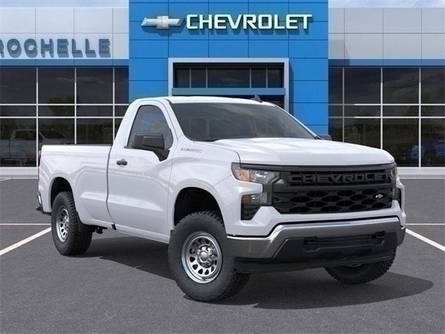 Summit White 2025 Chevrolet Silverado 1500 WT RWD 8-Speed Automatic EcoTec3 5.3L V8 8-Speed Automatic, Black Cloth.