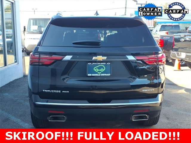 ***LEATHER***, ***LOW MILES***, ***SUNROOF***, *** ALL WHEEL DRIVE***, *** BACKUP SENSORS***, *** LEATHER ***, *** ONE OWNER***, ***ACCIDENT FREE***, ***NAVIGATION***, ***CARBRAVO***, AWD. Priced below KBB Fair Purchase Price! Odometer is 8108 miles below market average! CARFAX One-Owner. Clean CARFAX.Mosaic Black Metallic 2023 Chevrolet Traverse Premier AWD 9-Speed Automatic 3.6L V6 SIDI VVTAt New Rochelle Chevrolet our pricing strategy guaranties you the most aggressive pricing up front with no games or gimmicks. Our advertised price is our best price and we are confident you will be completely satisfied with the complete buying experience at NEW ROCHELLE CHEVROLET!!! Scheduled an appointment to test drive any of our Pre-owned cars today..... We appreciate the opportunity to earn your business.ABSOLUTELY committed to YOU!!!